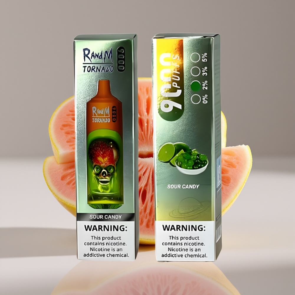 RandM Tornado 9000 Puffs 850mAh 18mL Malla RGB Caramelo Ácido