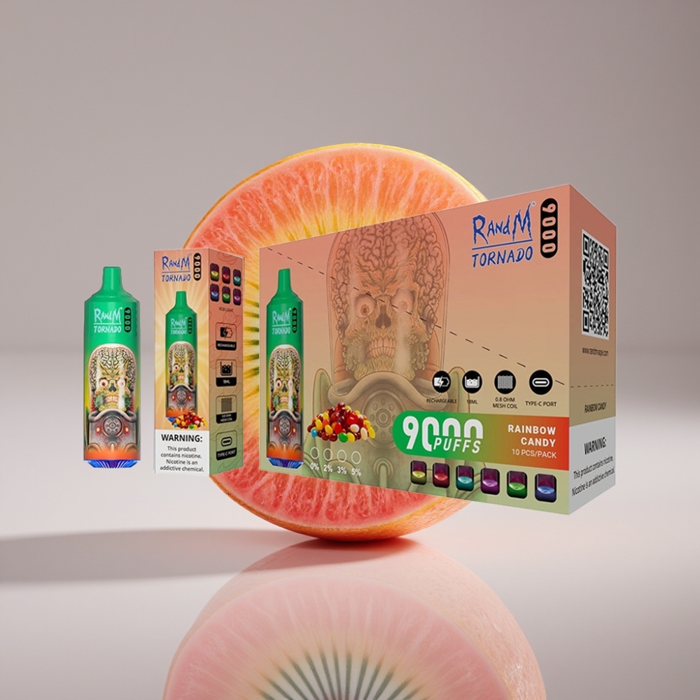 RandM Tornado 9000 Puffs 850mAh 18mL Malla RGB Caramelo Arcoíris
