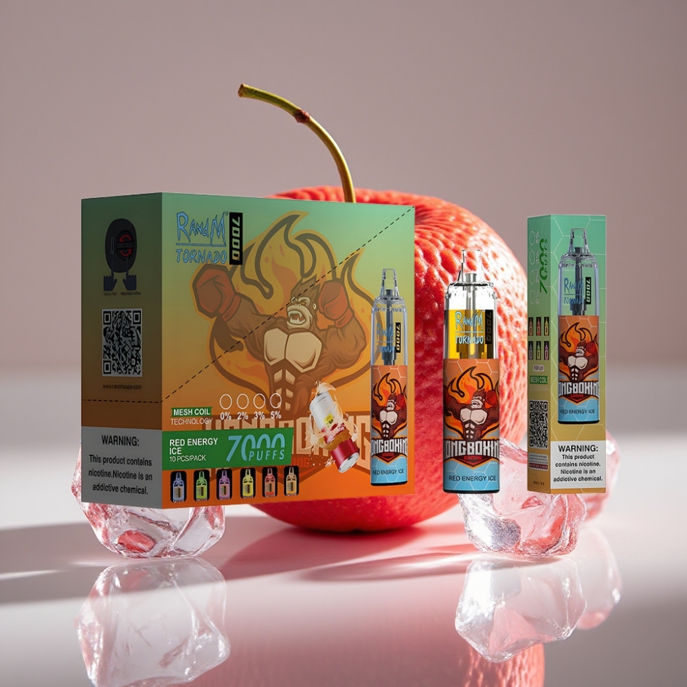 Fumot Tornado 7000 Puffs 14ML 850MAH Malla RGB Tipo-C Aire Ajustable Energía Roja Hielo
