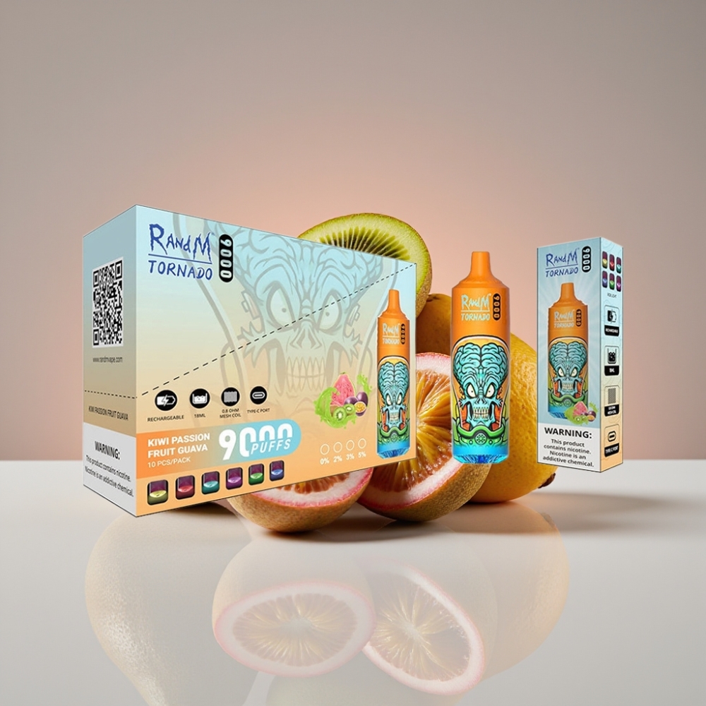 RandM Tornado 9000 Puffs 850mAh 18mL Malla RGB 54 Sabores Kiwi Maracuyá Guayaba