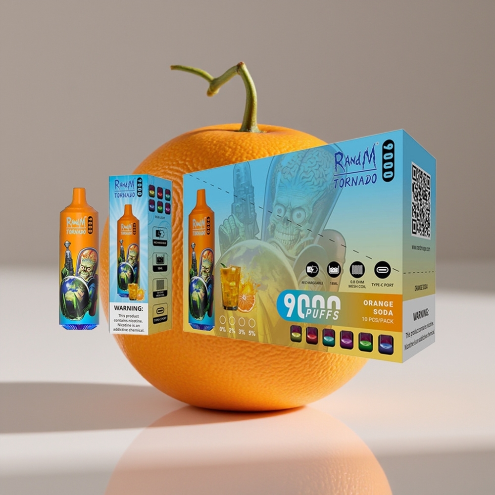 RandM Tornado 9000 Puffs 850mAh 18mL Malla RGB Naranja Refresco