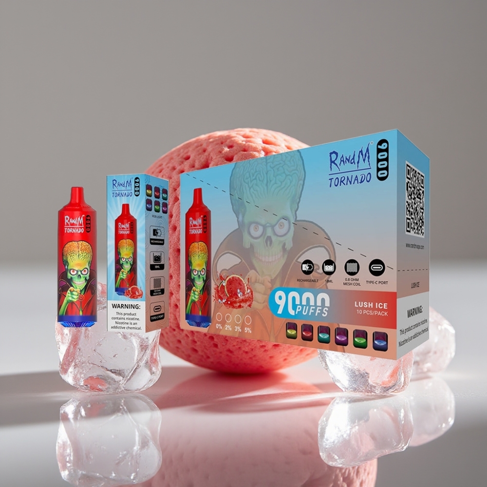 RandM Tornado 9000 Puffs 850mAh Recargable 18mL Malla RGB Hielo Frondoso