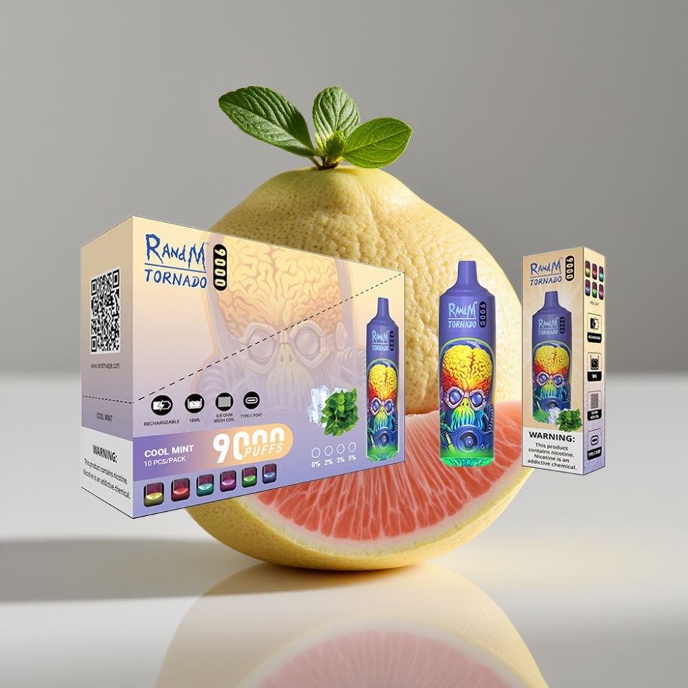 RandM Tornado 9000 Puffs 850mAh Recargable 18mL Menta Fría Pantalla RGB Bobina Mesh
