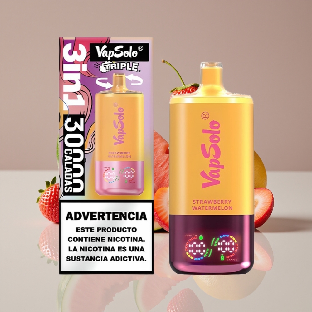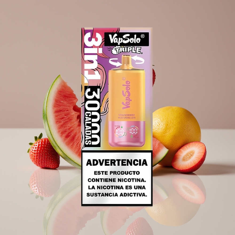 VapSolo Triple 30000 Puffs 40ml Fresa Sandía & Limón Melocotón Tipo-C